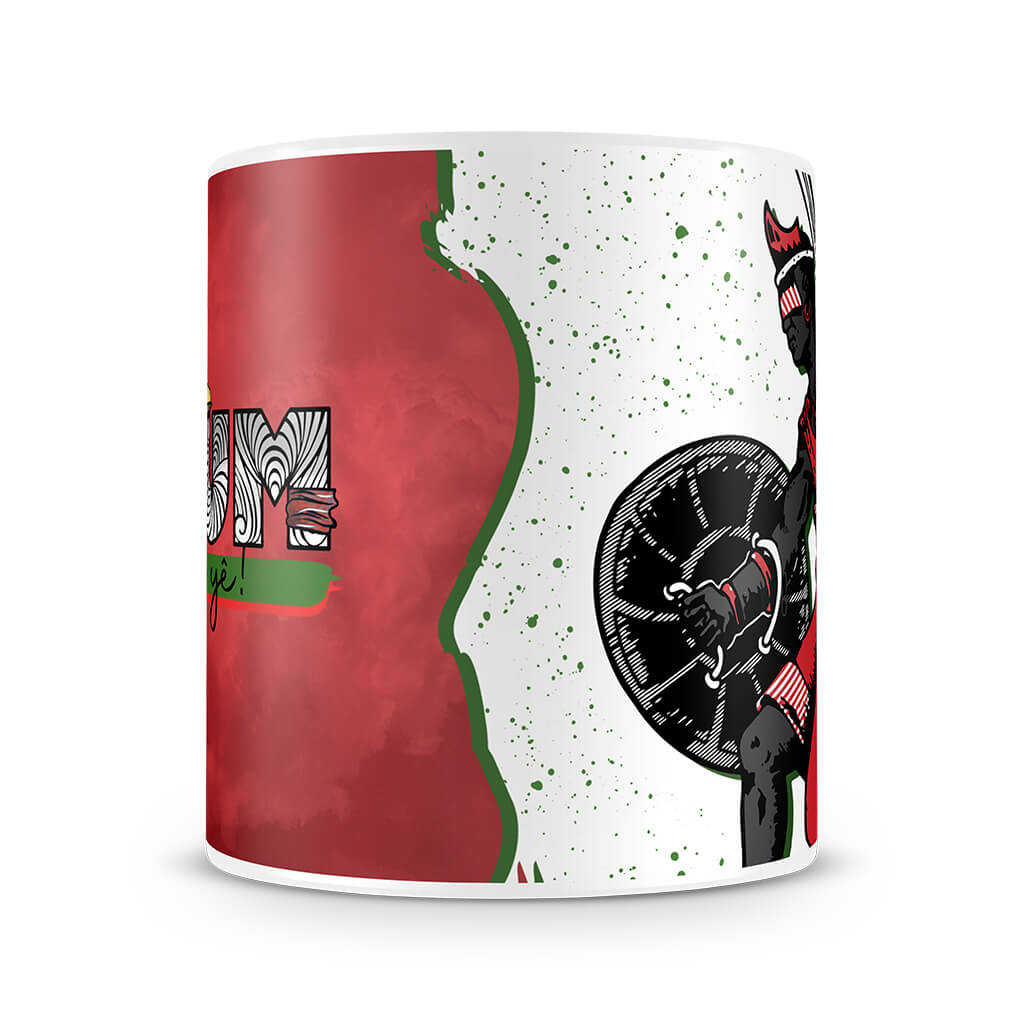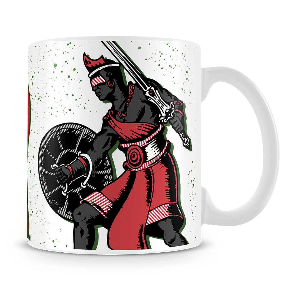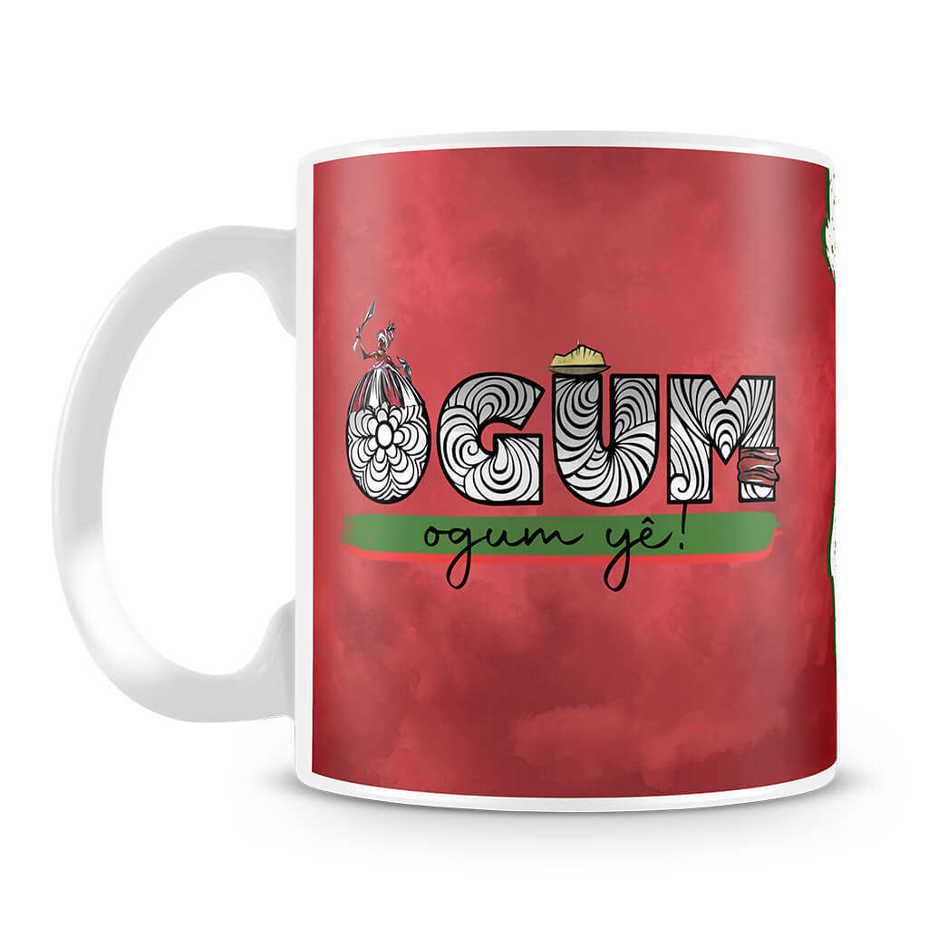 Força, coragem e caminho aberto. Esta caneca celebra Ogum, o Orixá guerreiro, senhor dos caminhos e da tecnologia. Protetor dos que lutam com honra, Ogum representa movimento, conquista e determinação — e essa energia acompanha você a cada gole.